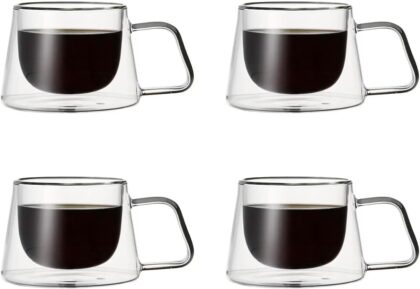 Doppelwandige Thermogläser im 2/4/6-teiligen Set – hitzebeständige Kaffeegläser mit Henkel für Cappuccino, Latte Macchiato & Tee. Elegante, isolierte Teetassen für optimalen Genuss.
