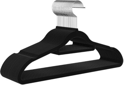 Premium Samt-Kleiderbügel: rutschfeste Haken für Jacken und Pullover, mit Krawattenhalter & Kinderbügel-Set, Bügel Samt, 360° drehbarer Haken, Platzsparend & Strapazierfähig