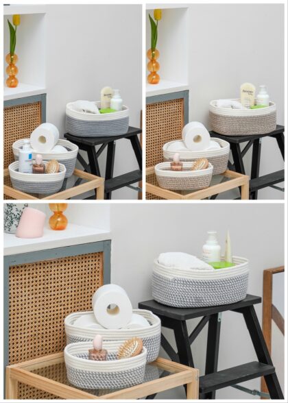 3-teiliges Aufbewahrungskorb-Set I Aufbewahrungsbox Organizer Kiste Box Korb Aufbewahrung Dekobox Dekokorb Dekoration – geflochtene Rattan-Optik – für Badezimmer Wohnzimmer Kinderzimmer