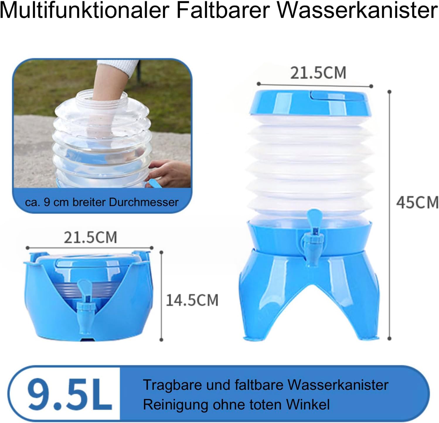- Platzsparendes Design: Zusammenklappbares Akkordeon-Design ermöglicht eine platzsparende Aufbewahrung. Vollständig ausgefahren bietet der Getränkespender eine Höhe von 45 cm und ein Fassungsvermögen von 9,5 Litern.