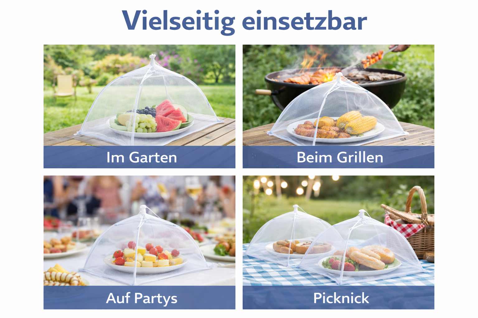 - Perfekt für drinnen oder draußen, um Insekten, Fliegen und Wespen vom Essen fernzuhalten – ideal für Partys und Barbecues Zugleine und Lebensmittelabdeckung öffnet sich – leicht zu verstauen, wenn sie nicht in Verwendung als Falten flach