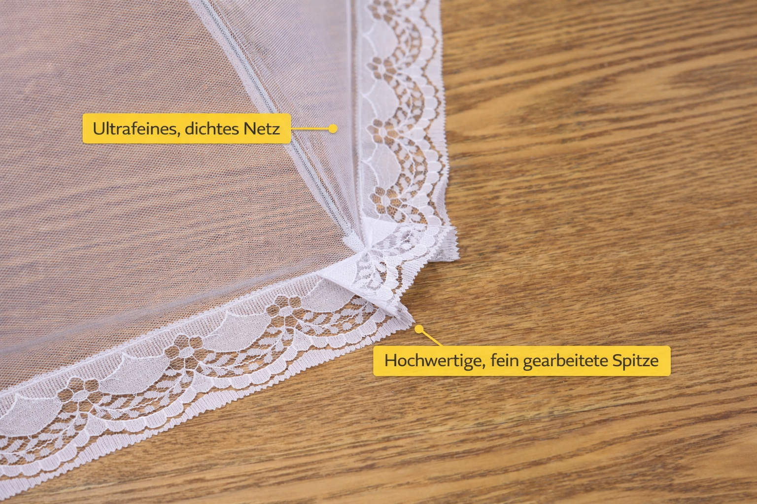 - Hergestellt aus Polyester-Netz mit weißer Spitze