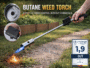 Unkrautbrenner RHP Unkrautvernichter 80cm, Gasbrenner mit Piezo-Zündung, Abflammgerät max 1000 °C, Brenner Flamme regulierbar, ideal als Grillanzünder (Nur Unkrautbrenner)